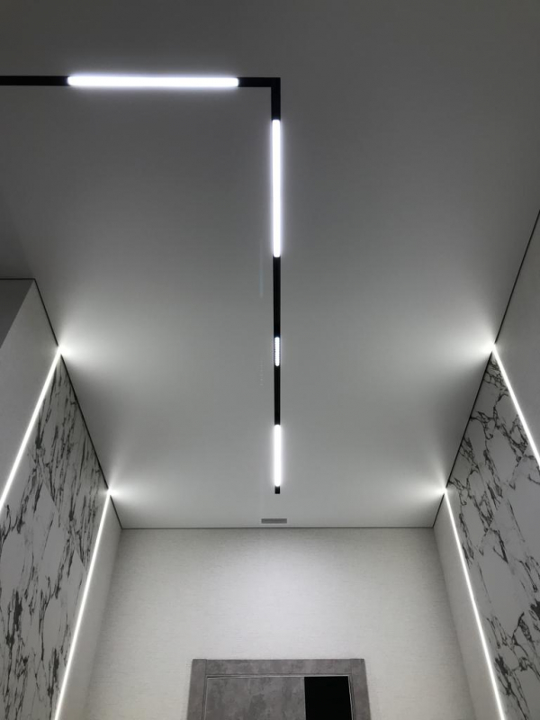 Разнообразие полотен (как однотонных, так и комбинированных), фактур (глянцевая, матовая, сатиновая), рисунков для фотопечати и инженерных технологий потолков позволяют воплотить даже сложное уникальное решение!